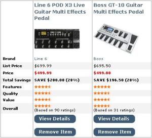 Actualmente existen en el mercado dos principales pedaleras de efectos digitales que me atraen demasiado, éstas son: BOSS GT-10 y Line 6 X3 Live. Pues ambas madrezotas me han tenido babeando desde hace un buen ratillo. Ahora, llego al punto de la confusión. Ambos cuestan prácticamente lo mismo, tengo el dinero, pero… ¿cuál comprar? En Musician’s Friend traté de hacer la comparación pero ps me dejó igual: